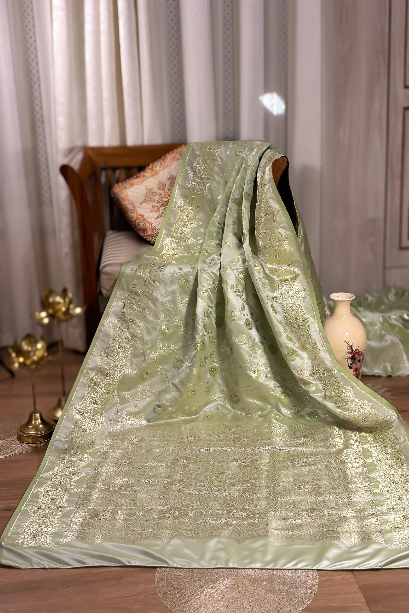 Haritprabha (हरितप्रभा) – Celestial Pistachio Silk Saree with intricate Zardozi hand embroidery